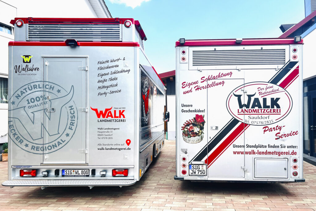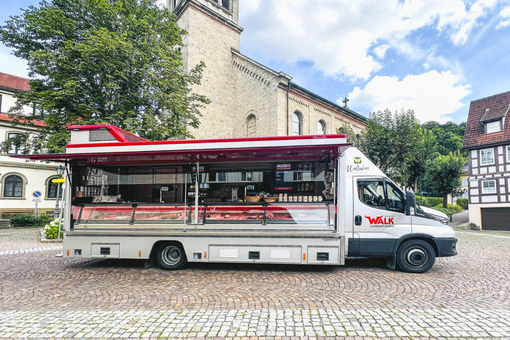 Außer in unserem Ladengeschäft verkaufen wir unsere schmackhaften Fleisch- und Wurstwaren in unserem Verkaufswagen. Mit ihm erreichen wir Kunden im Umkreis von bis zu 40 km um Sauldorf herum.